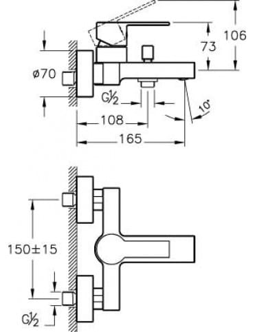 Çıkış ucu uzunluğu : 160 mm El duşu çıkışı G 1/2"tir.Duş kumandası kilitlemelidir. Metal paray..